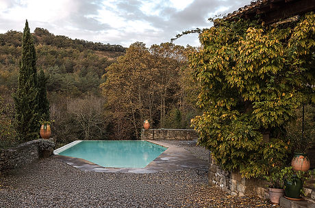 Step outside and the enchantment continues: a dramatic infinity pool sits on the cliff's edge. Perfect for enjoying the sun, there is a pool house with a shaded terrace, seating for sixteen or so, and a barbecue and stone pizza oven. Recently completed is a barn which can seat around 100 people, a kitchen, a shower and separate WC. The private chapel (perfect for late-night music-making!) is nestled beneath rose-covered high walls. The garden falls over 4 terraces of flowers, steps and paths into beautiful surrounding meadows, with the river running through.